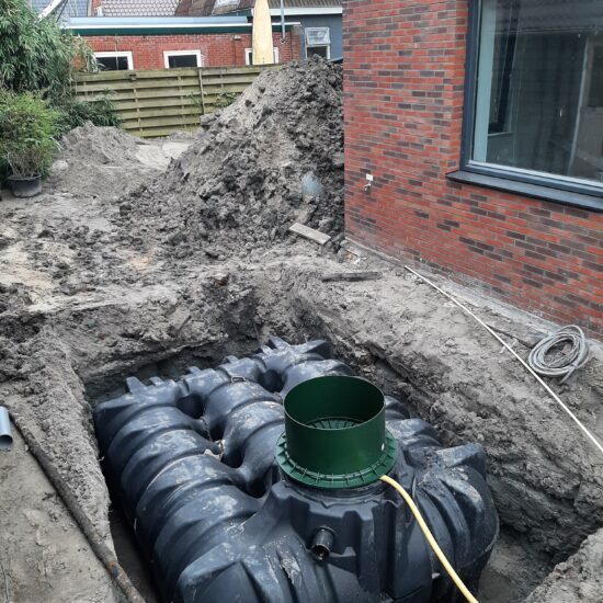 “Leg een regenwateropslag onder de grond aan. Je kunt dit water gebruiken voor het doorspoelen van het toilet of voor de buitenkraan. Zo bespaar je duizenden liters drinkwater per jaar.”